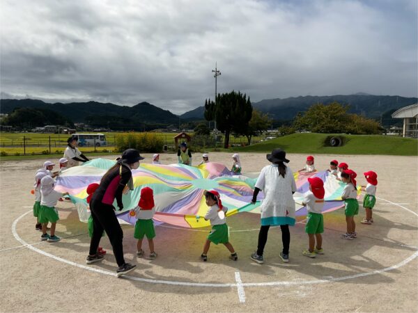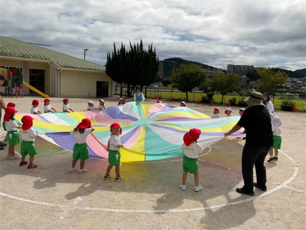 大きなパラバルーンをクラスのお友だちと一緒に頑張ります😊