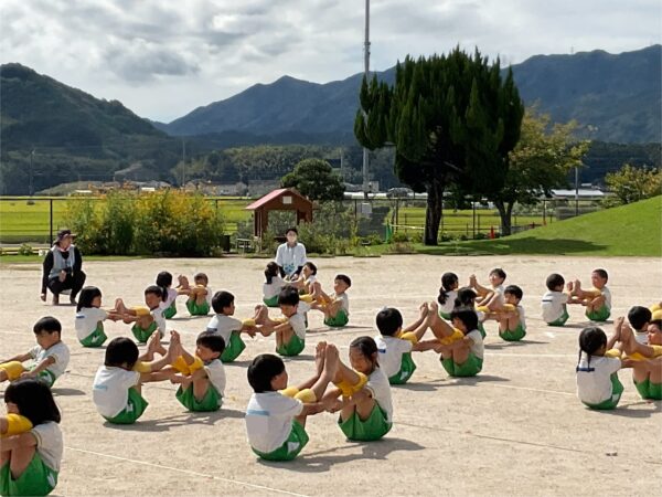 年長組はスポーツ教室の先生と一緒に組体操の練習にも励んでいます!