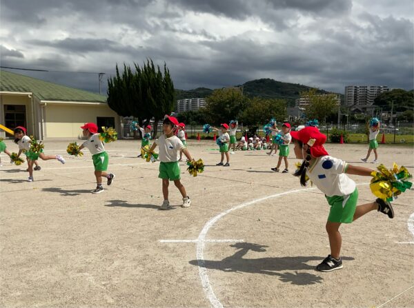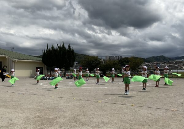 遊戯の練習も頑張っています🎶 旗とポンポンに分かれて演技をしますよ😊