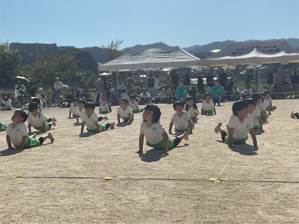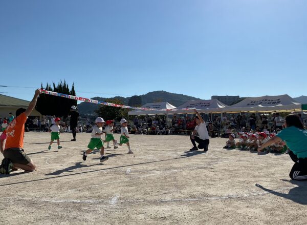 青空の下、子どもたちの元気いっぱいな姿をお家の方に見て頂くことが出来ました🎶