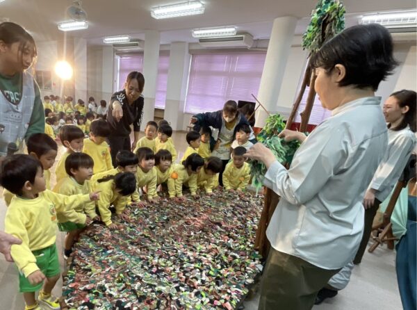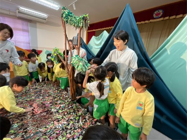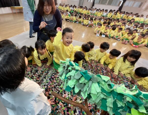 「これ何でできているの~?」「布がついてるね~」「本物の木で出来ているの??すごい!」