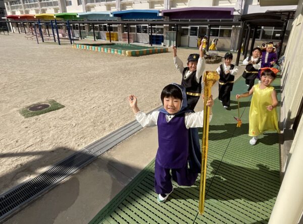 初めは恥ずかしがっていたお友だちも練習を重ねるうちに役になりきり、自信を持って演じる事ができるようになっていました😊