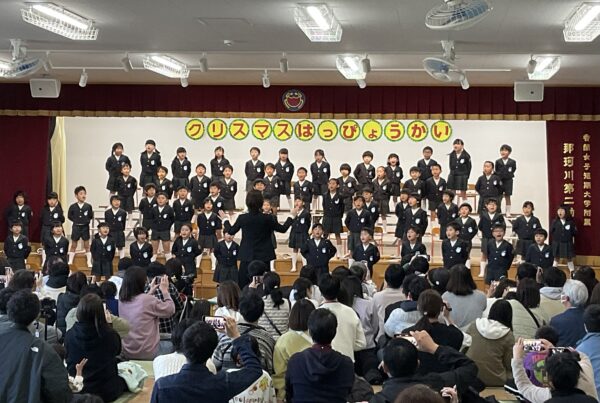 一生懸命に指揮の先生を見て歌ったり演奏したり、劇で熱演する姿に成長を感じましたよ。