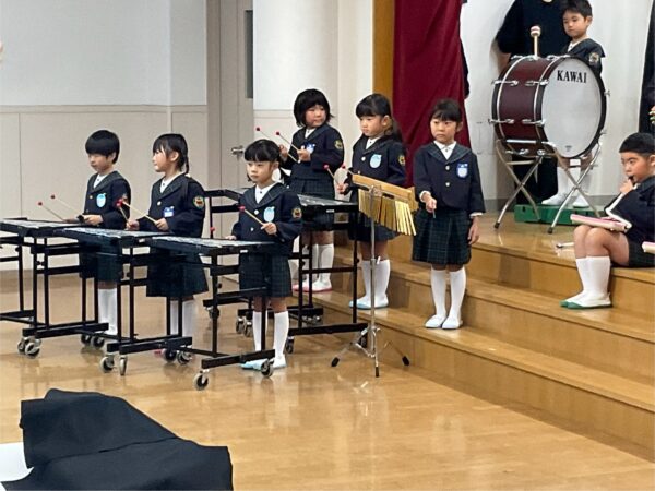 合奏は、大太鼓・小太鼓・チャイム・シンバル・ボンゴ・鉄琴・キーボード・ウッドブロック・トライアングル・すず・タンブリンなど沢山の楽器を使い演奏しました🎶