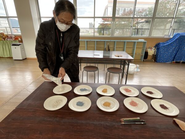 重ねたり、色の濃さで仕上がりが変わるそうで、河野先生のアドバイスをもらいながら皆さん真剣に色を付けていきます😊