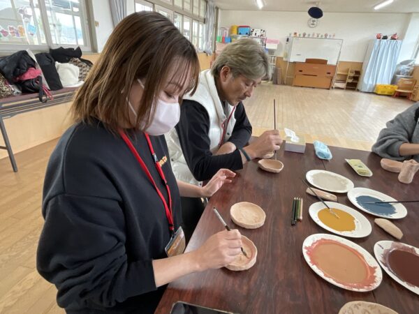 今回は前回の「陶芸教室」で形を作った物に『絵付け』をしました😊