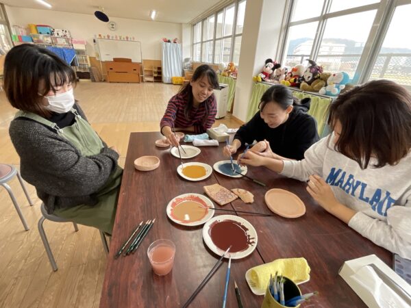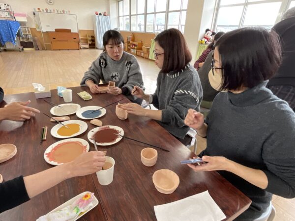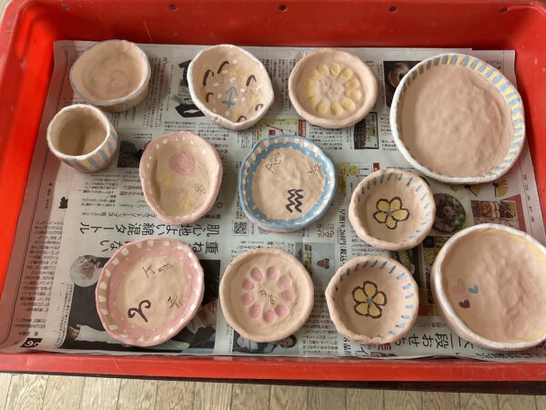 この後は河野先生が短大に持ち帰り、釉薬を付けたり窯で焼いたりしてくださり仕上がる予定です😊
