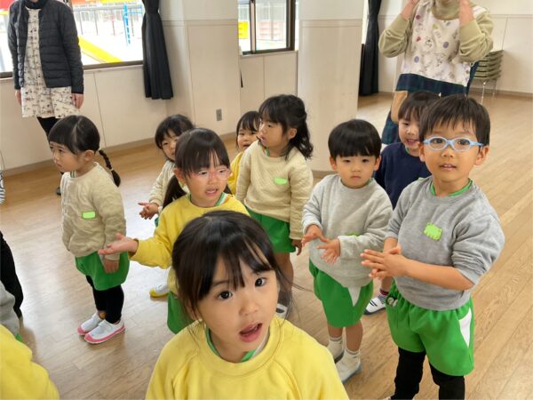 お友だちからの歌のプレゼントでは、年少組は『ゆきだるまのチャチャチャ』を可愛い振り付きで歌いました🎶