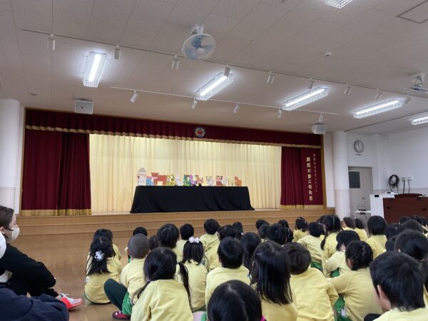 みんなで手遊びを楽しんだ後は、先生たちから出し物のプレゼントです🎶