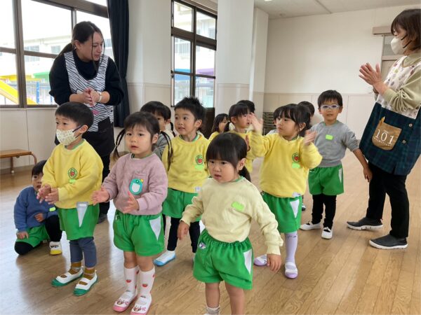 お友だちからの歌のプレゼントでは、年少組は『ゆきだるまのチャチャチャ』を可愛い振り付きで歌いました🎶