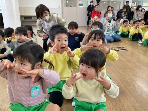 みんなで手遊びを楽しんだ後は、先生たちから出し物のプレゼントです🎶