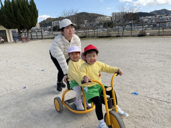 他にも自転車で遊んだり、砂場で大きなお山を作ったり、鬼ごっこをしたりとそれぞれが好きな遊びを楽しんでいました!