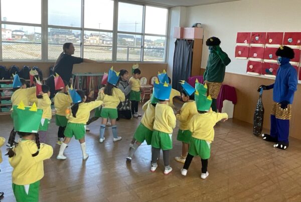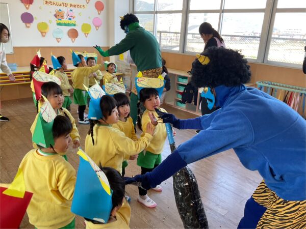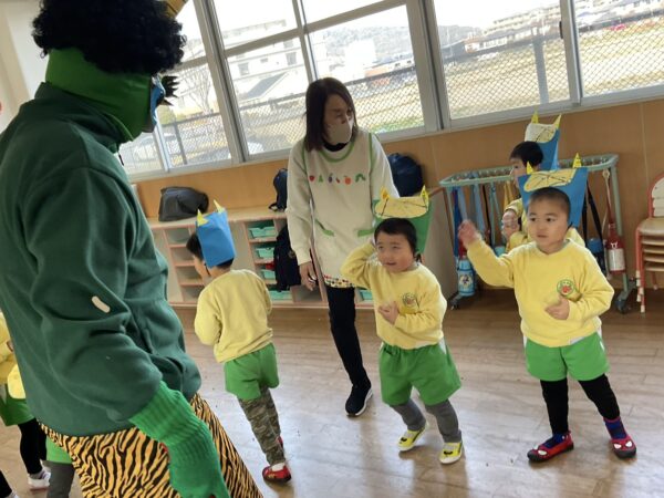 年少組には、先生のお友だちの緑鬼くんと、青鬼くんがやってきました。