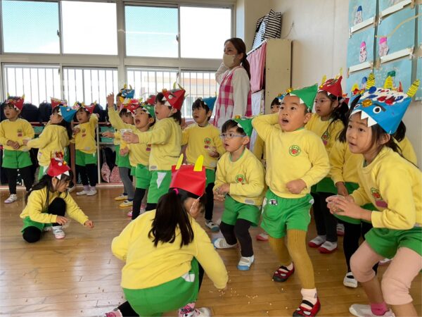 幼稚園では、2月2日(月)に豆まきを行いました😊