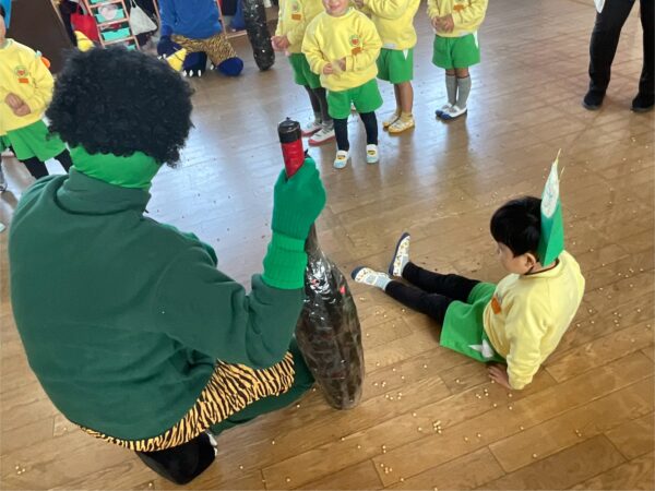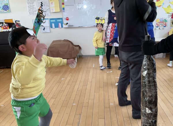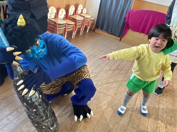 鬼は思っていたよりも大きく強そうで「怖い~」と泣いているお友だちもいましたが、「心の鬼をやっつけるぞ~」ととても張り切っていました😊