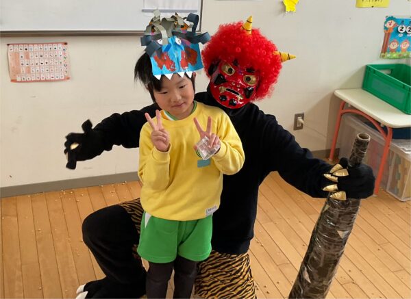 最後はクラスのみんなで力を合わせて鬼退治をしました🎵