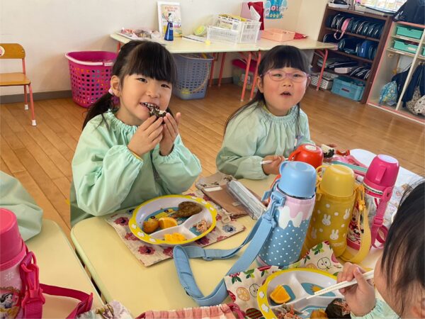 給食のバイキングも好きな物を選んでお腹いっぱい食べている子どもたちでした💕