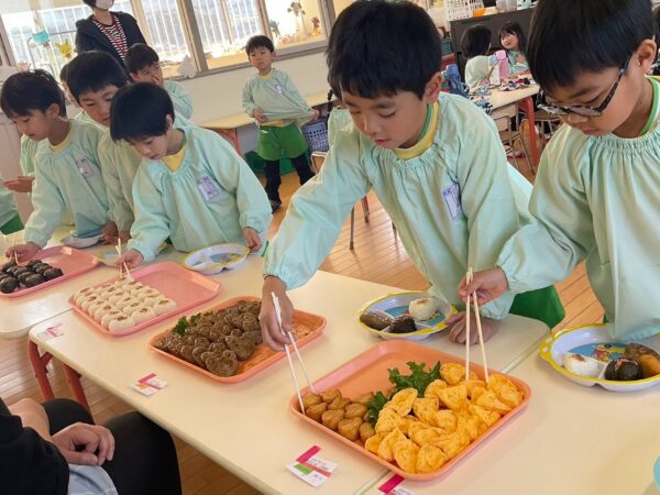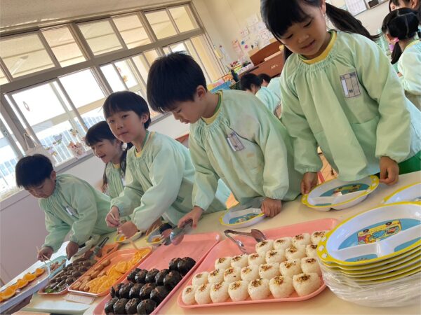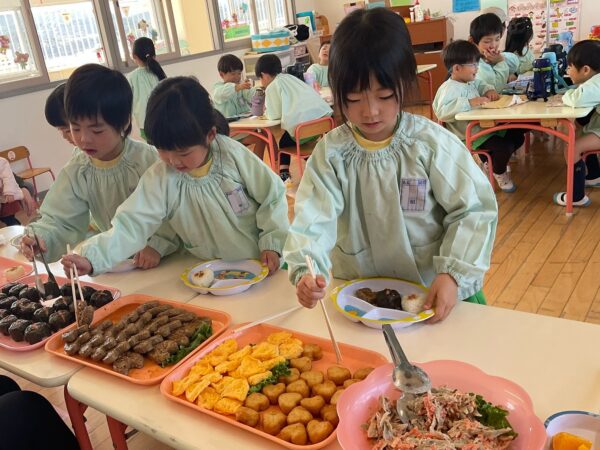 給食のバイキングも好きな物を選んでお腹いっぱい食べている子どもたちでした💕