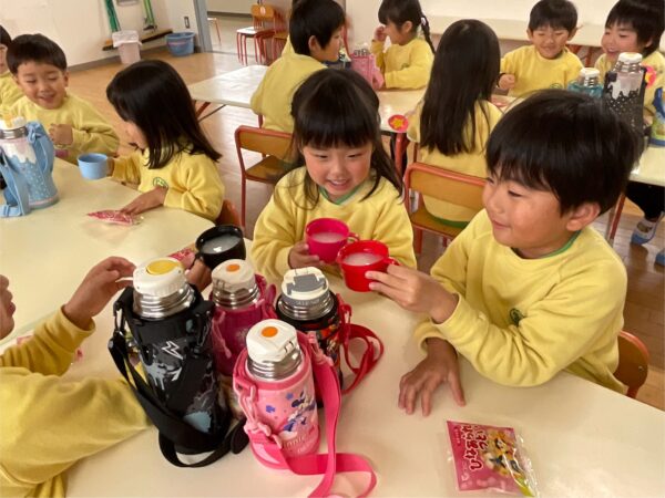 (子どもたちには白酒と言っていますがカルピスです😄)を飲んでお祝いをしましたよ🌸