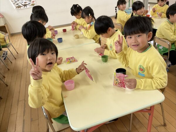 年少組さんは、2クラス合同でひなまつり会をしましたよ✨