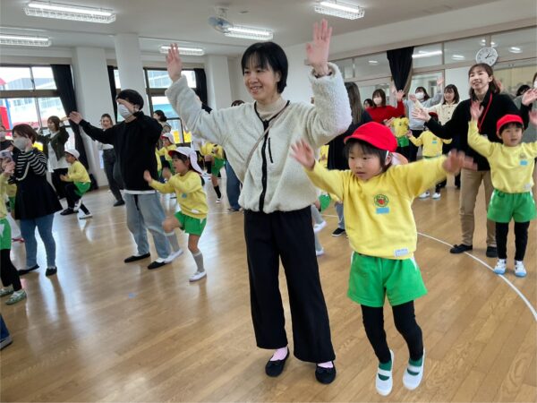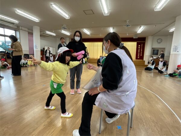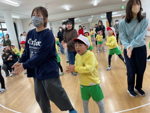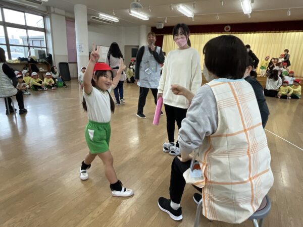 この日はあいにくの雨でしたが、遊戯室でお家の人や先生たちと楽しく体操やゲームをして過ごしましたよ✨