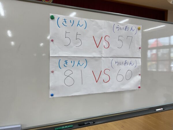 1回戦は、きりん組さん、らいおん組さんのお友だちで勝負をしましたよ🔥