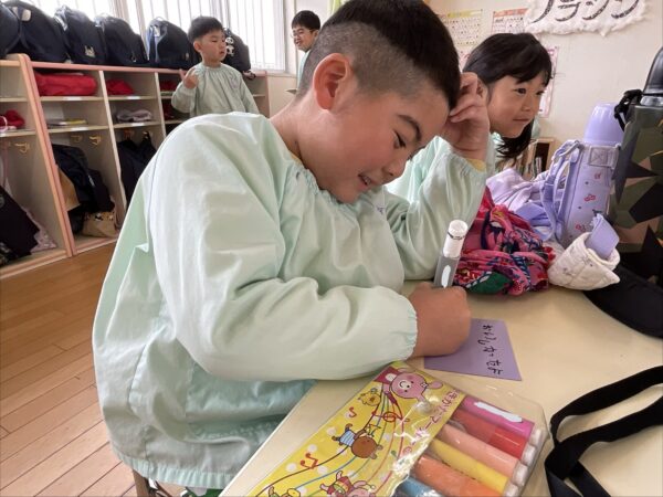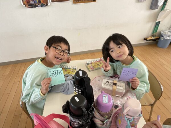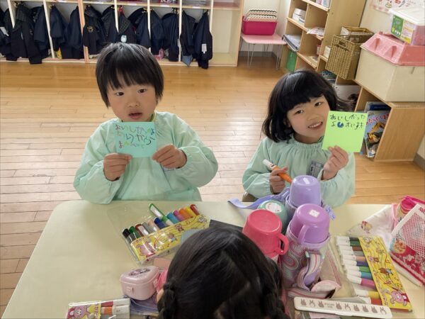 「おべんとうおいしかったよ!」「ありがとう」と自分たちでメッセージを考えていましたよ💕