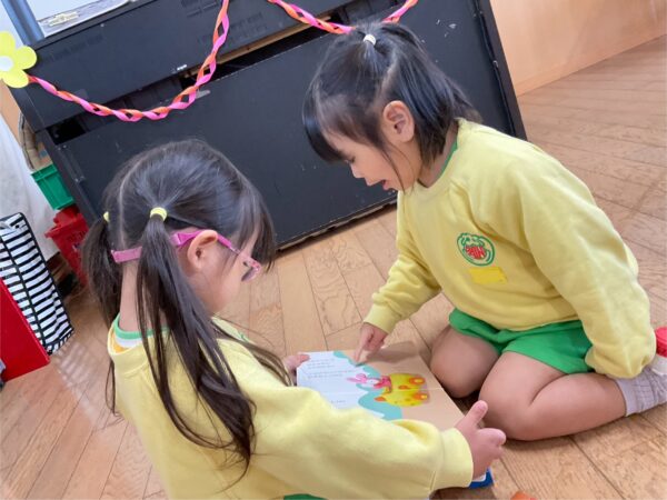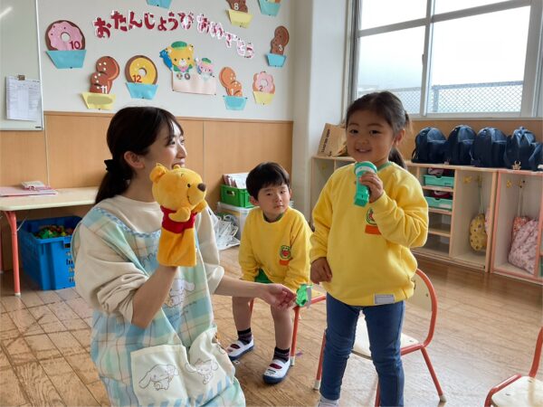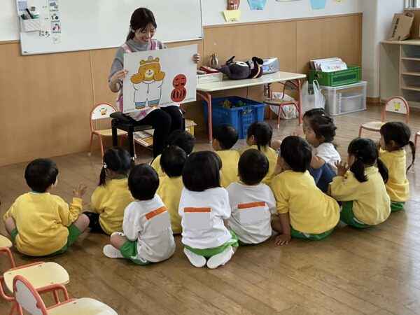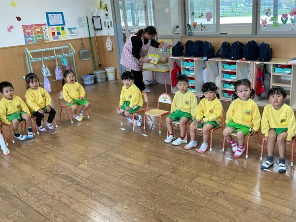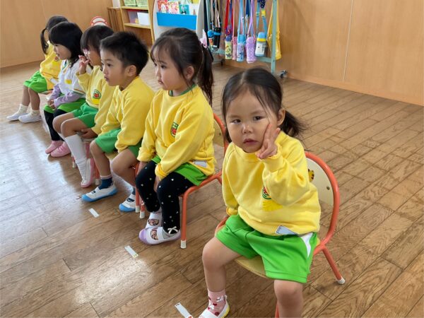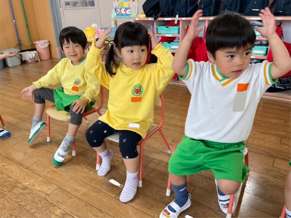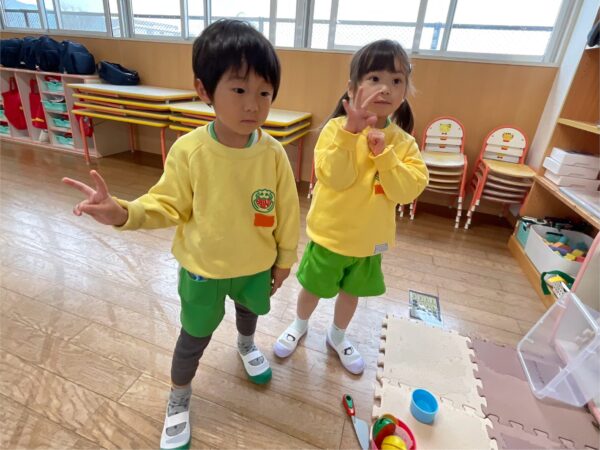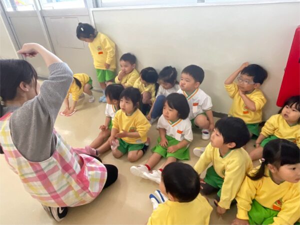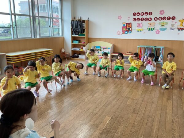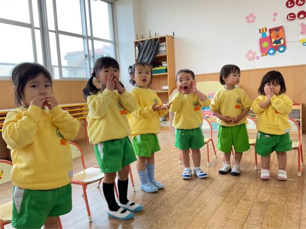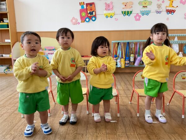 先生やお友だちと一緒に手遊びをしたり、お歌を歌って過ごしました😊
