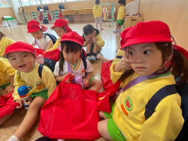 お部屋には、年長組のお兄さんお姉さんがお手伝いにきてくれていて一緒に朝の支度をしました😊