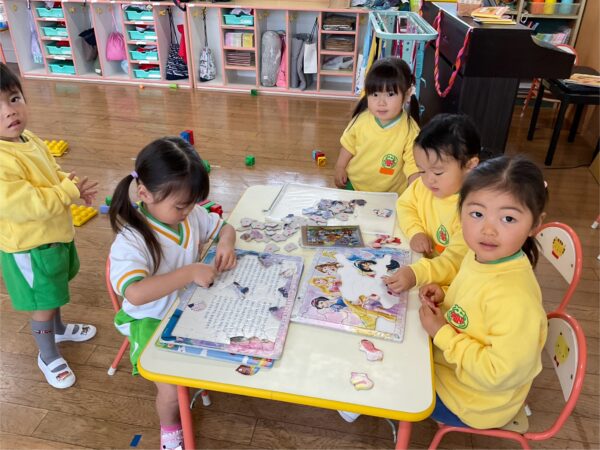 シール帳にシールを貼ったお友だちから好きなおもちゃで遊びます🎶