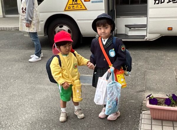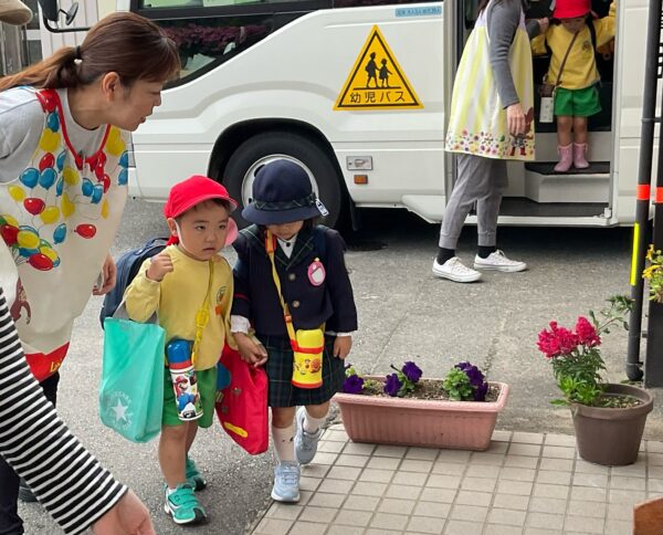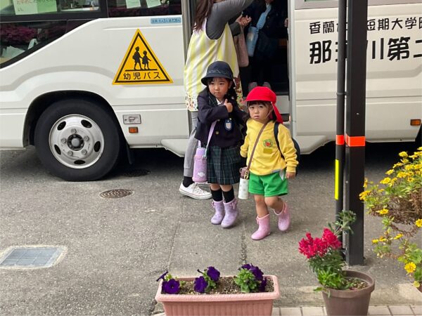 13日に入園式を終え、初めて園バスに乗って登園してきた様子です😊✨
