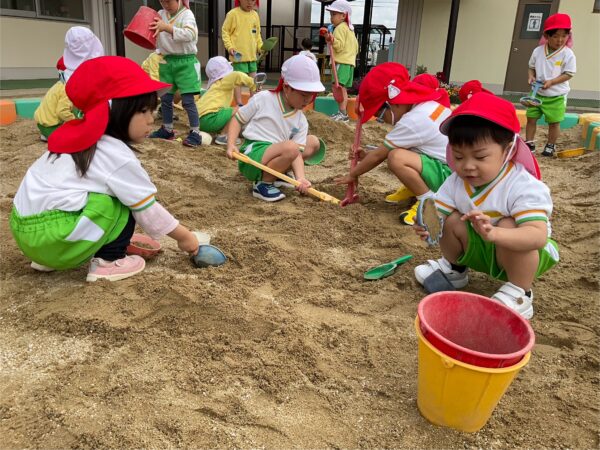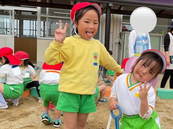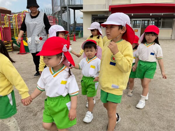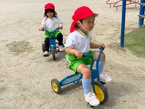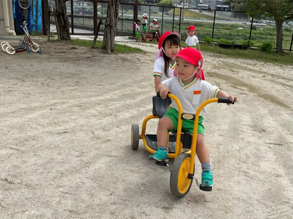 お兄さん、お姉さんに教えてもらった後にみんなでお外で遊びました😊