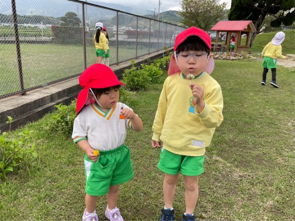 4月16日はやーっと天気になったので、年長組さんと一緒に園庭探検に行きました😊