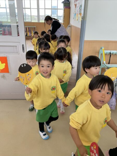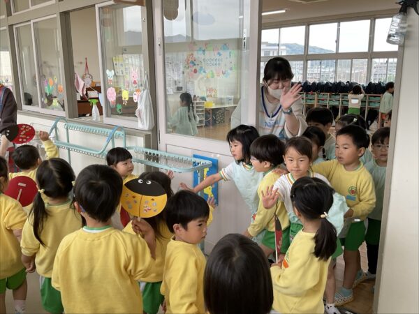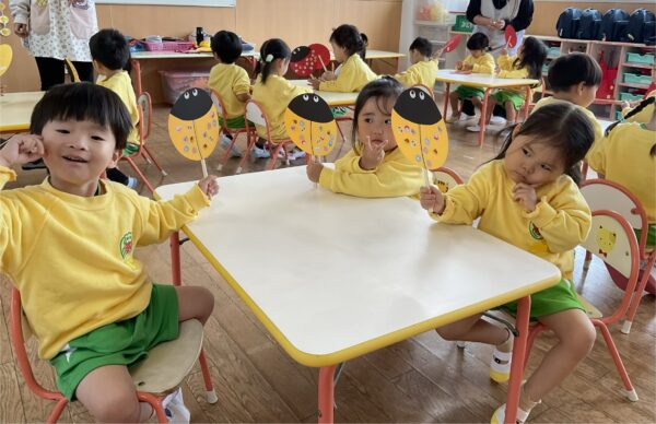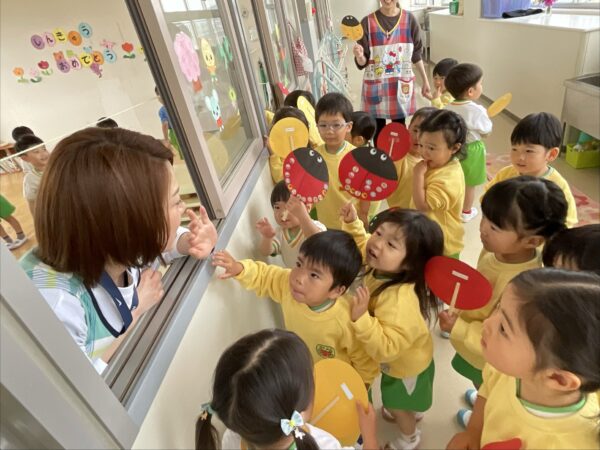 4月17日に年少組は自分たちで作ったテントウムシ🐞を連れて、園内探検に行きました😊🎶