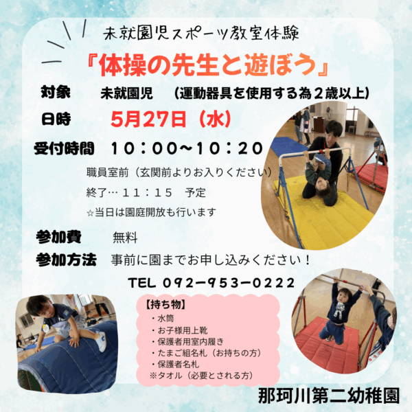 ※10/30に「1歳から対象 体操の先生と遊ぼう」を予定しております。